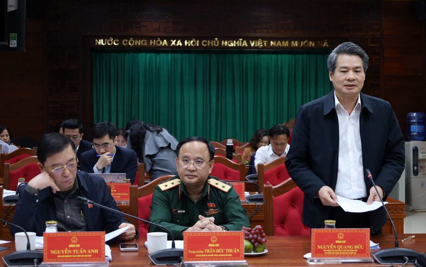 Đồng chí Thượng tướng Lê Tấn Tới, Ủy viên Trung ương Đảng, Ủy viên Thường vụ Quốc hội, Chủ nhiệm Ủy ban Quốc phòng An ninh và Đối ngoại của Quốc hội, Phó Trưởng Tiểu ban Thường trực phát biểu chỉ đạo tại buổi làm việc