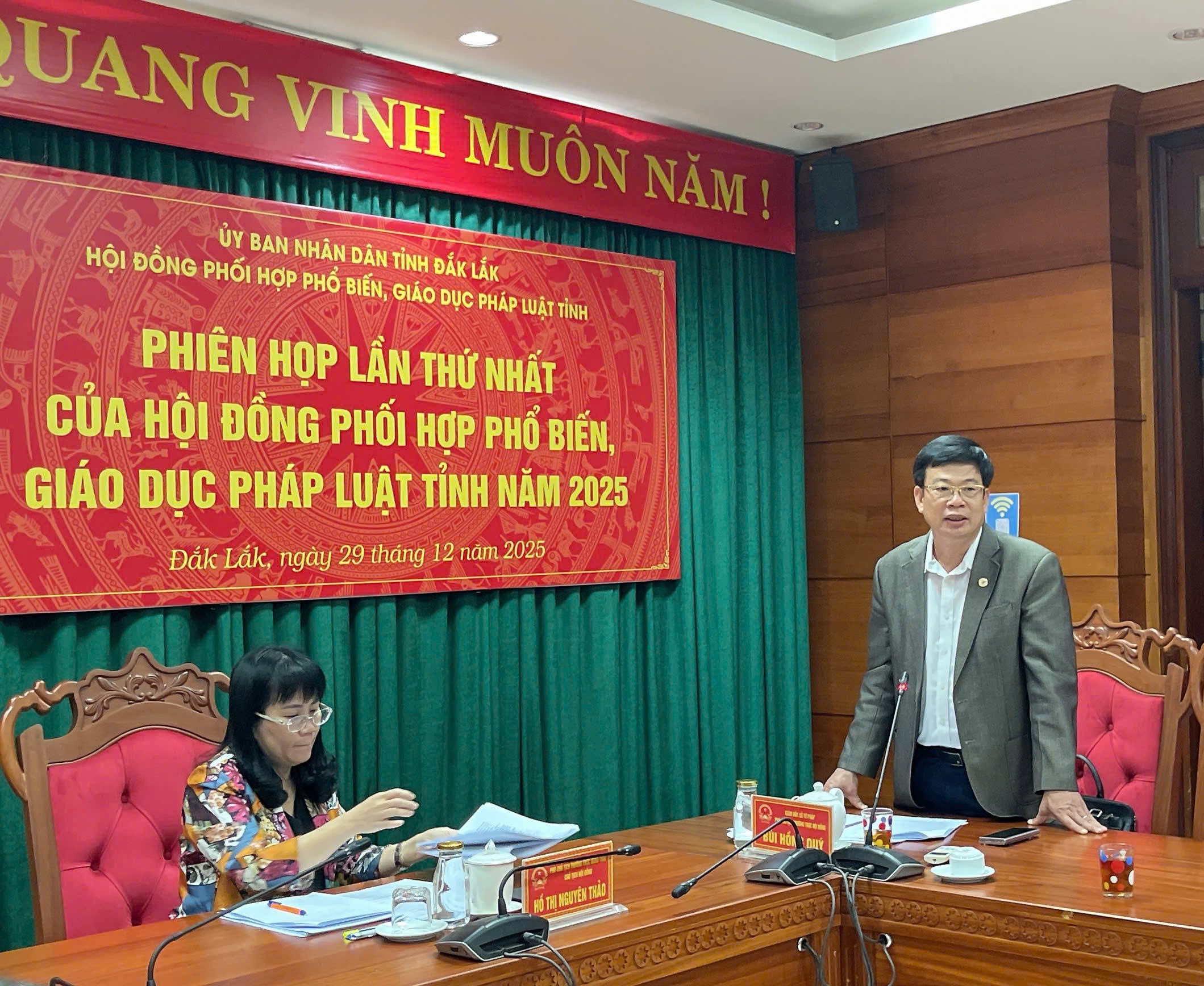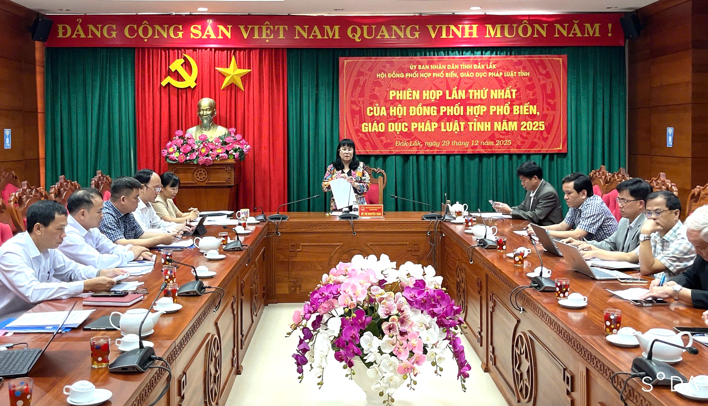 Chiều ngày 29/12/2025, Hội đồng phối hợp Phổ biến, Giáo dục pháp luật tỉnh (Hội đồng) đã tổ chức Phiên họp lần thứ Nhất. Phiên họp nhằm mục đích tổng kết, đánh giá kết quả hoạt động năm 2025 và xác định phương hướng, nhiệm vụ trọng tâm công tác phổ biến, giáo dục pháp luật, trợ giúp pháp lý và hỗ trợ pháp lý cho doanh nghiệp nhỏ và vừa năm 2026 trên địa bàn tỉnh. Đồng chí Hồ Thị Nguyên Thảo - Phó Chủ tịch Thường trực UBND tỉnh, Chủ tịch Hội đồng - chủ trì phiên họp