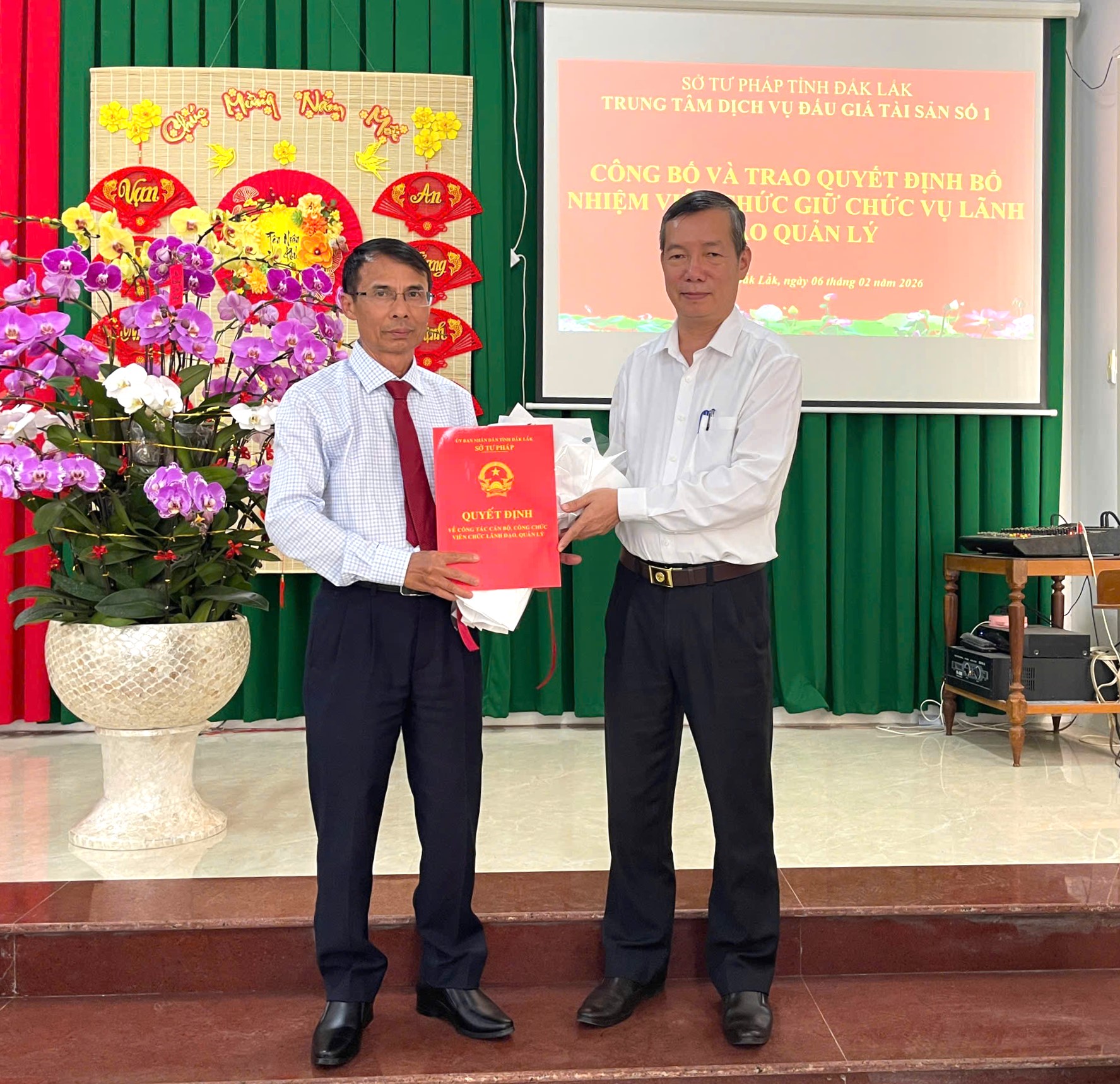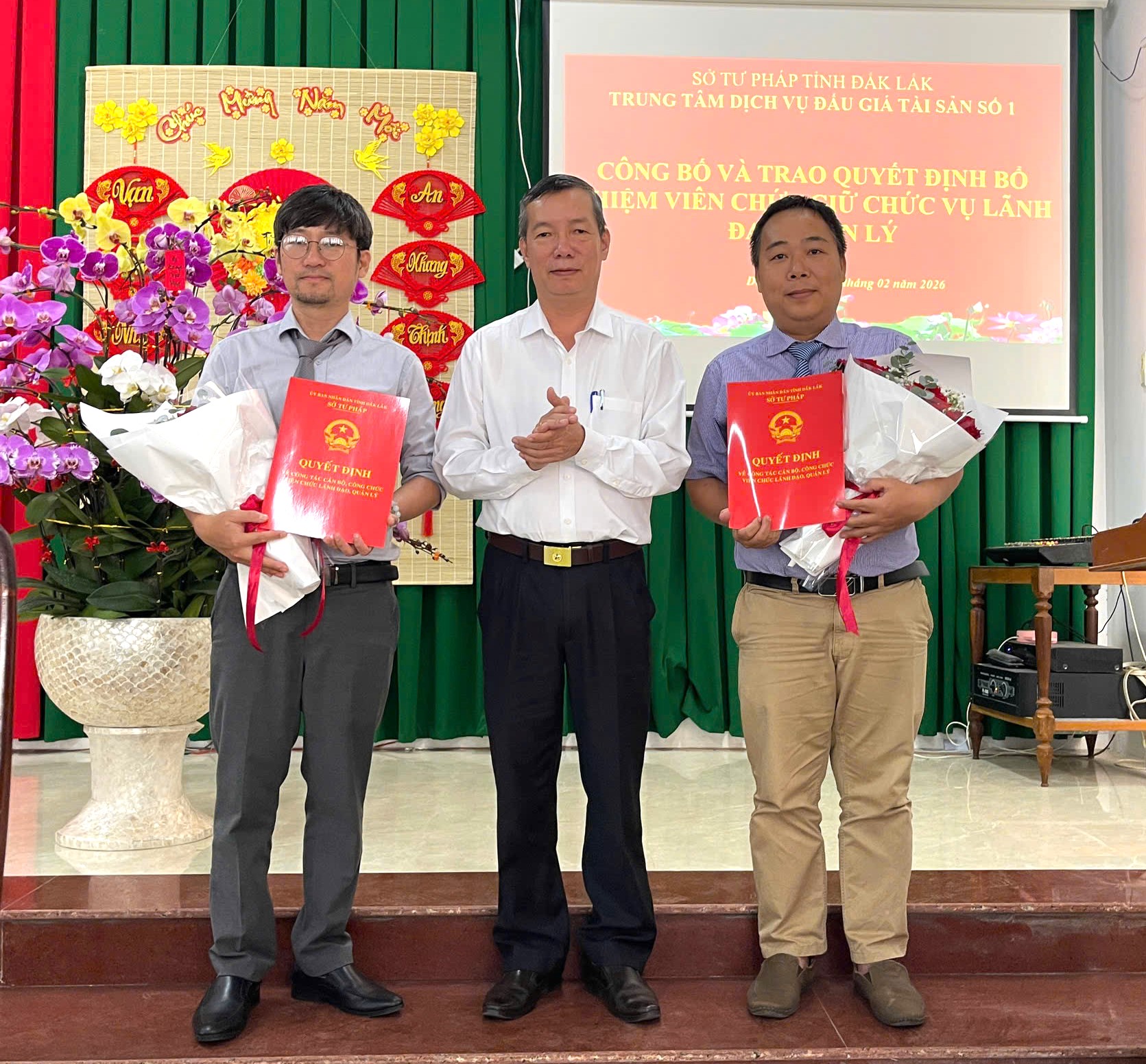 Sở Tư pháp công bố và trao Quyết định bổ nhiệm Giám đốc, Phó Giám đốc Trung tâm Dịch vụ đấu giá tài sản số 1