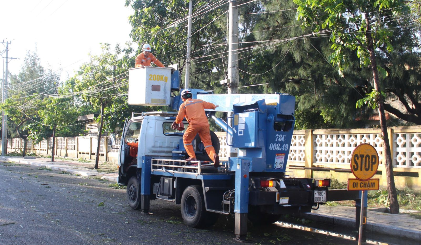 Nhân viên điện lực Đắk Lắk sửa chữa điện trên các tuyến đường.