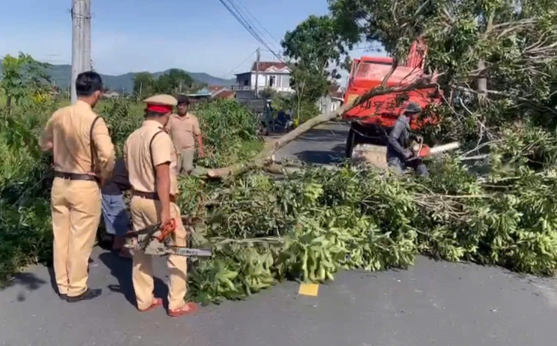 Tiến hành dọn dẹp cây xanh bị ngã đổ gây ách tắc giao thông.