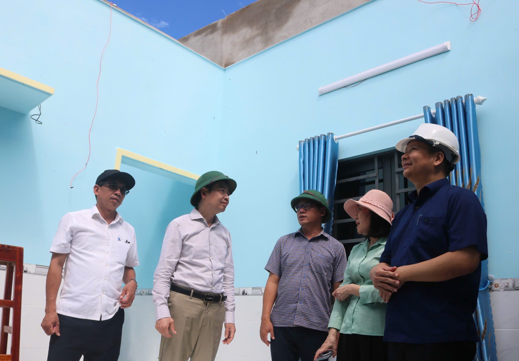 … và kiểm tra, thăm hỏi gia đình bị tốc mái ở xã Xuân Đài.