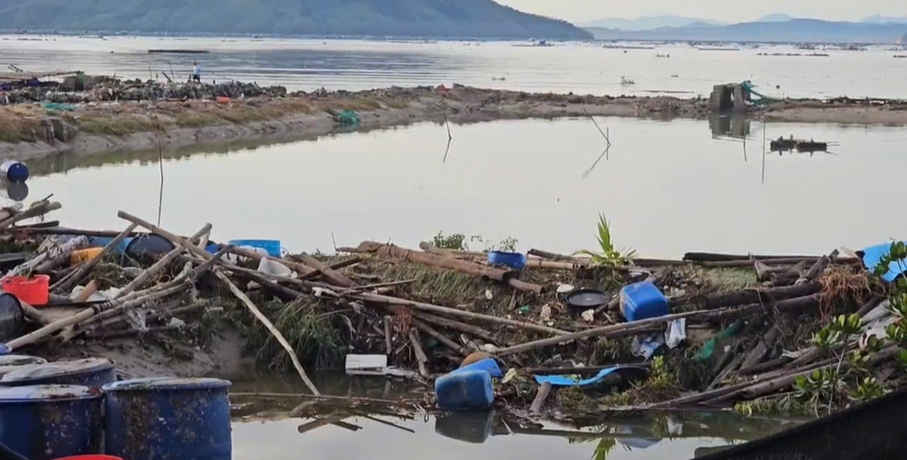 Các lồng nuôi thủy sản bị thiệt hại nặng nề sau bão.